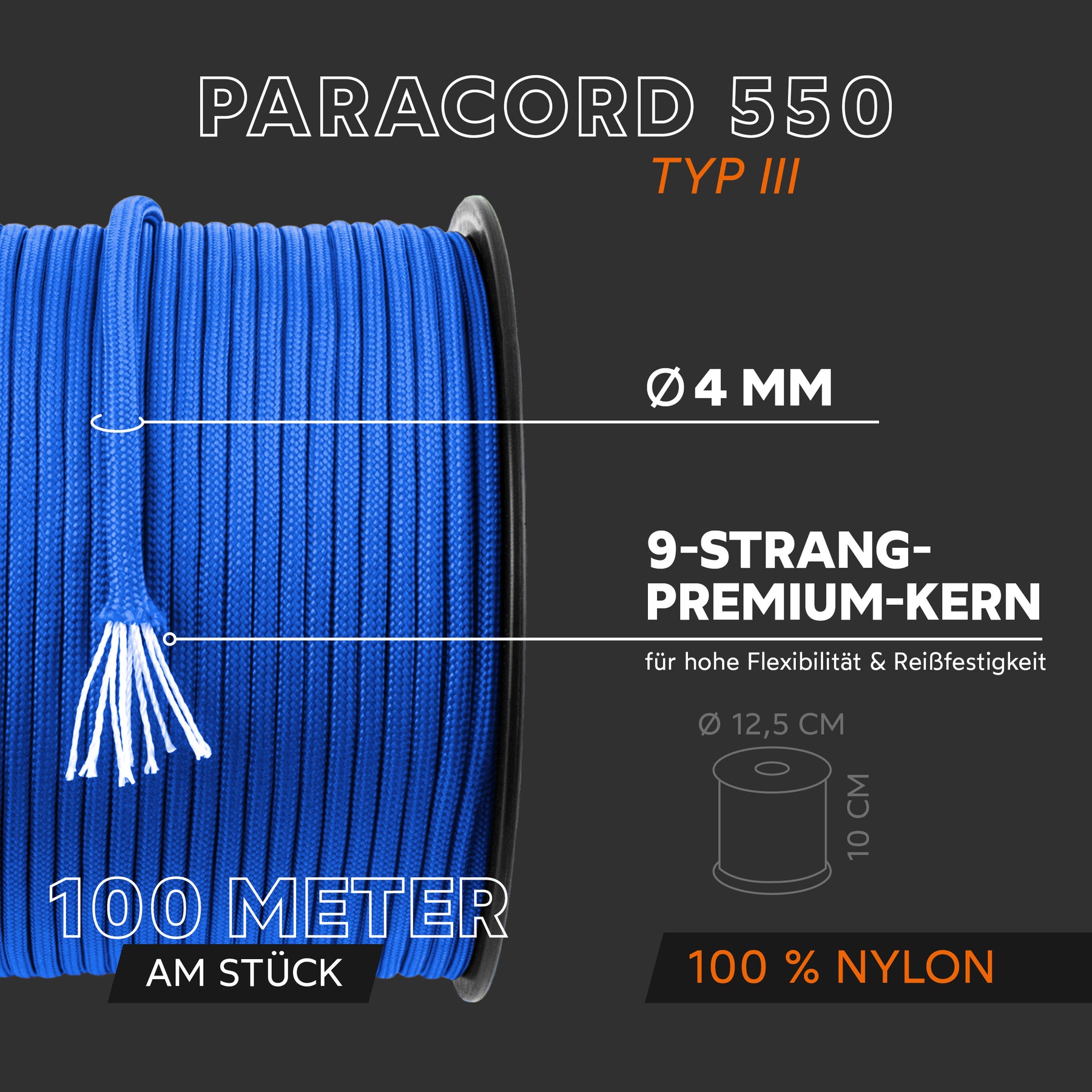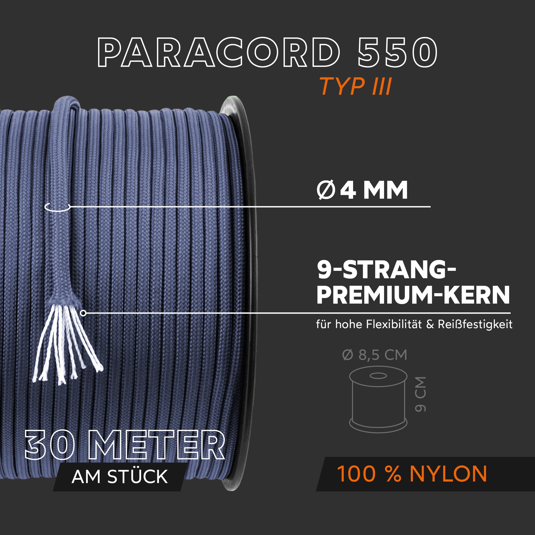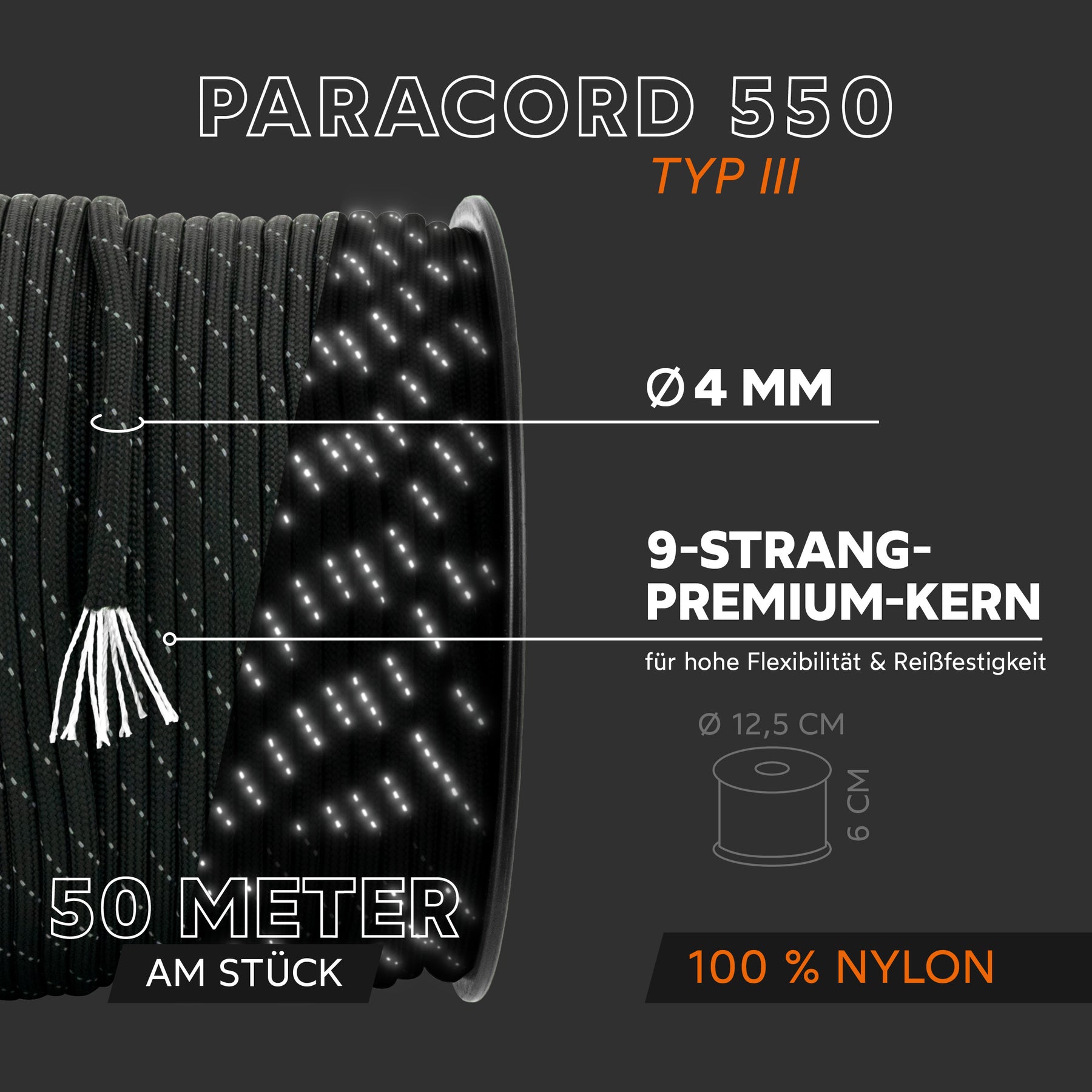 TECHNISCHE SPEZIFIKATIONEN & INHALT: Paracord 550 Typ III, Mil-Spec