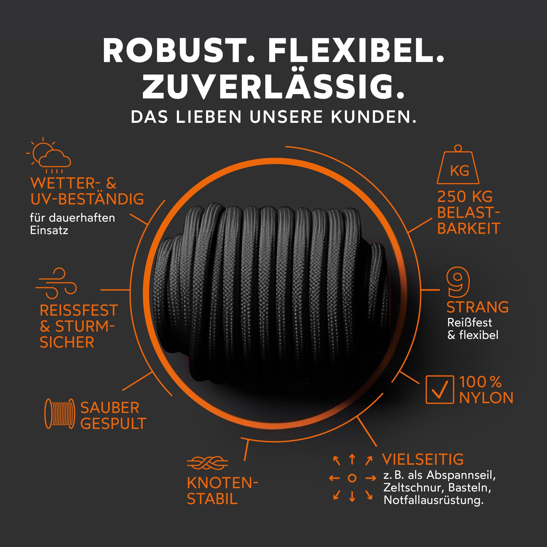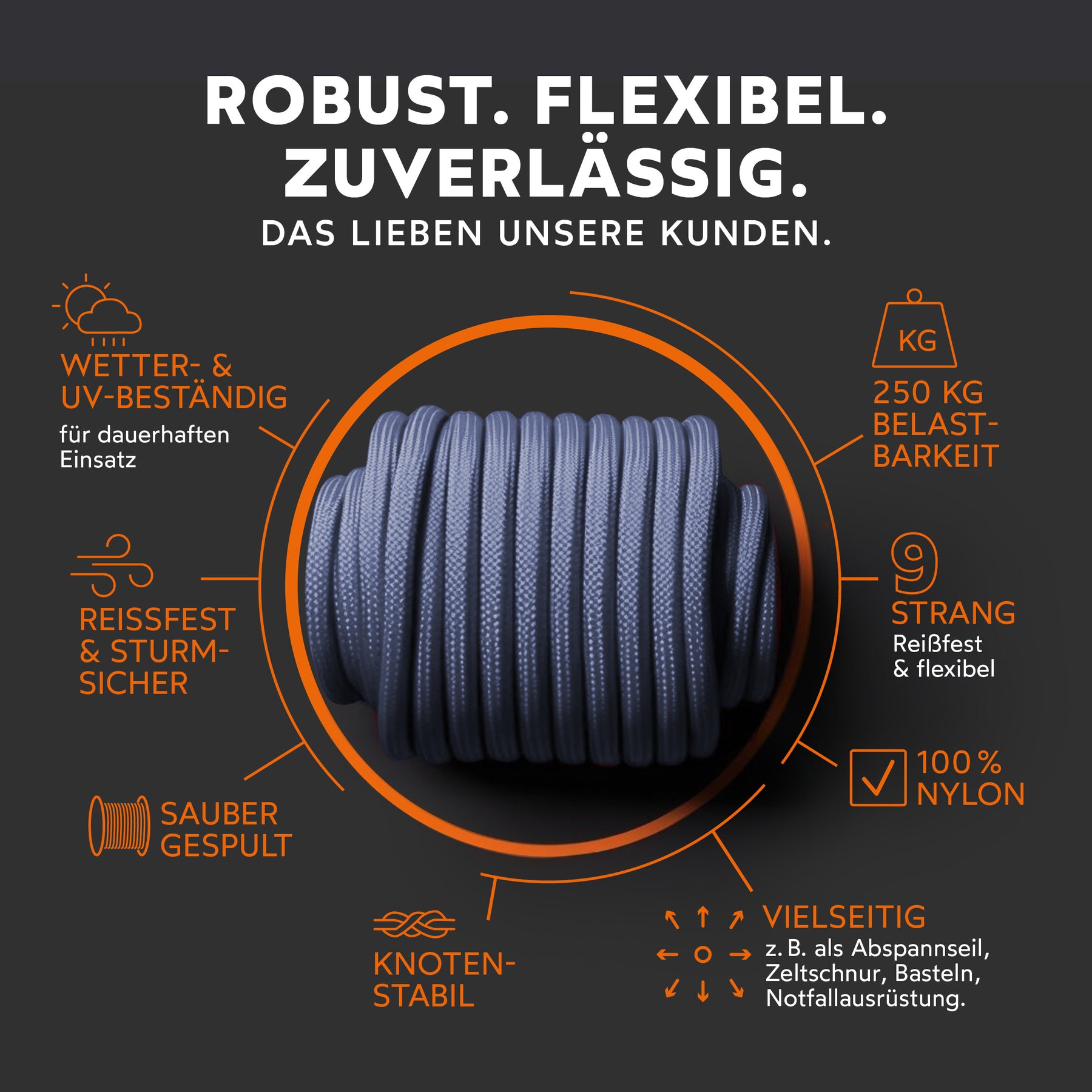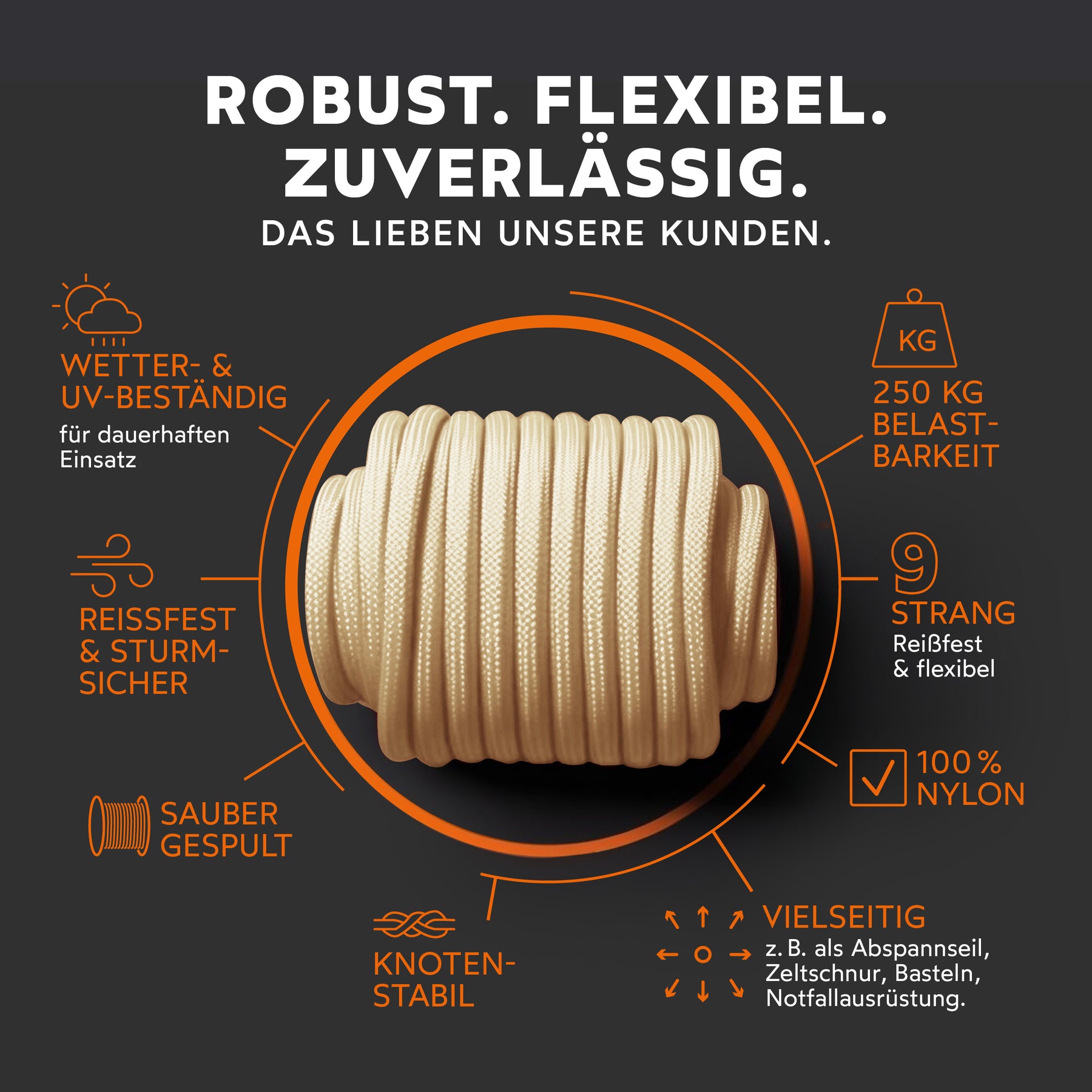 Material: 100% Nylon, Kernmantel mit 9 Kernen