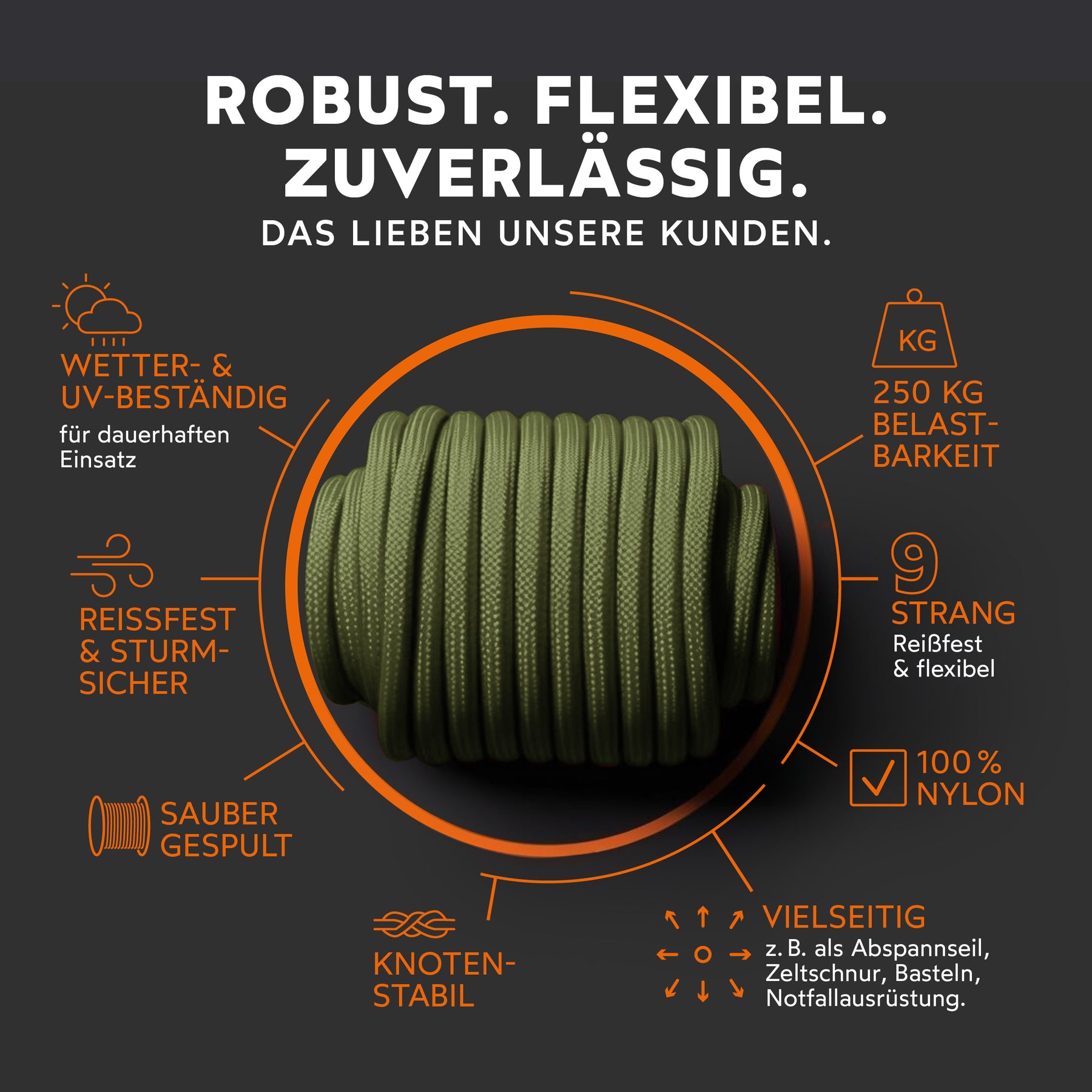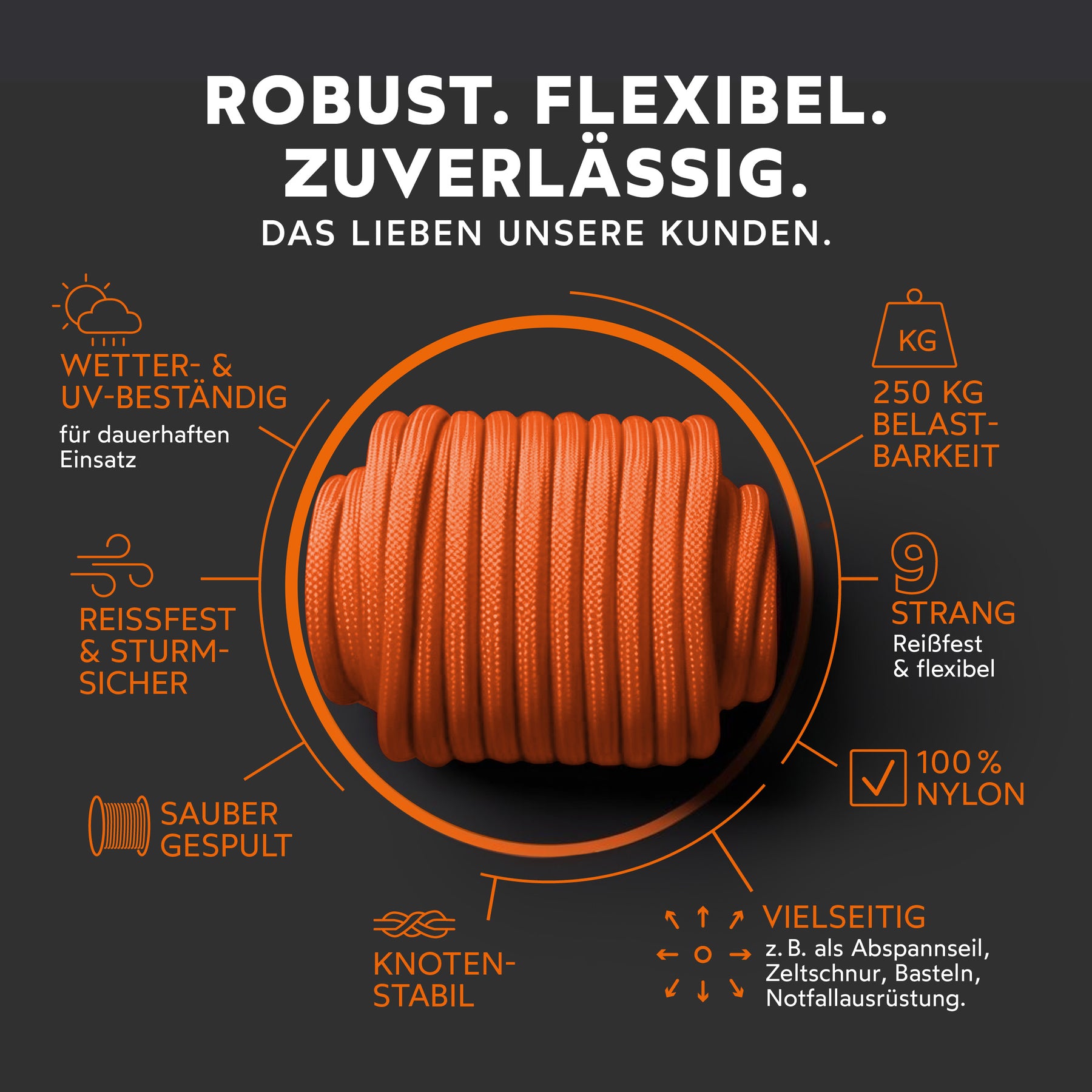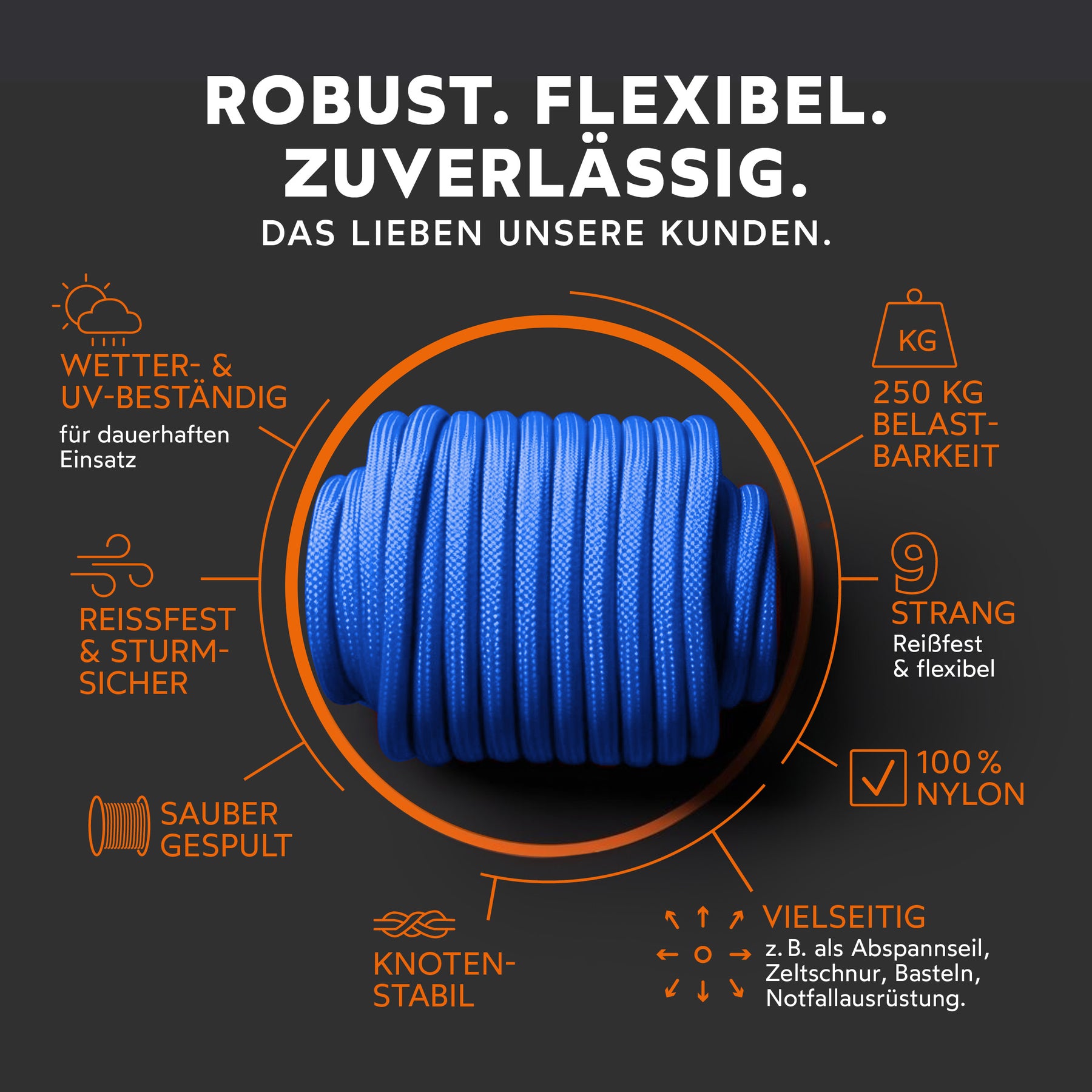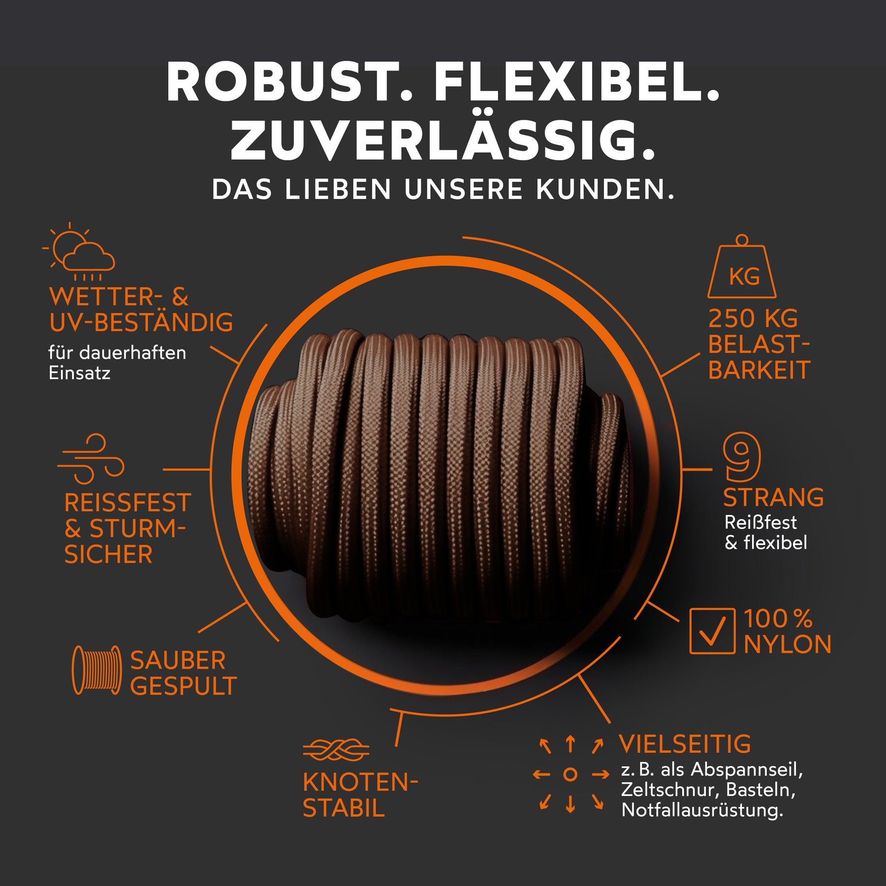 Material: 100% Nylon, Kernmantel mit 9 Kernen