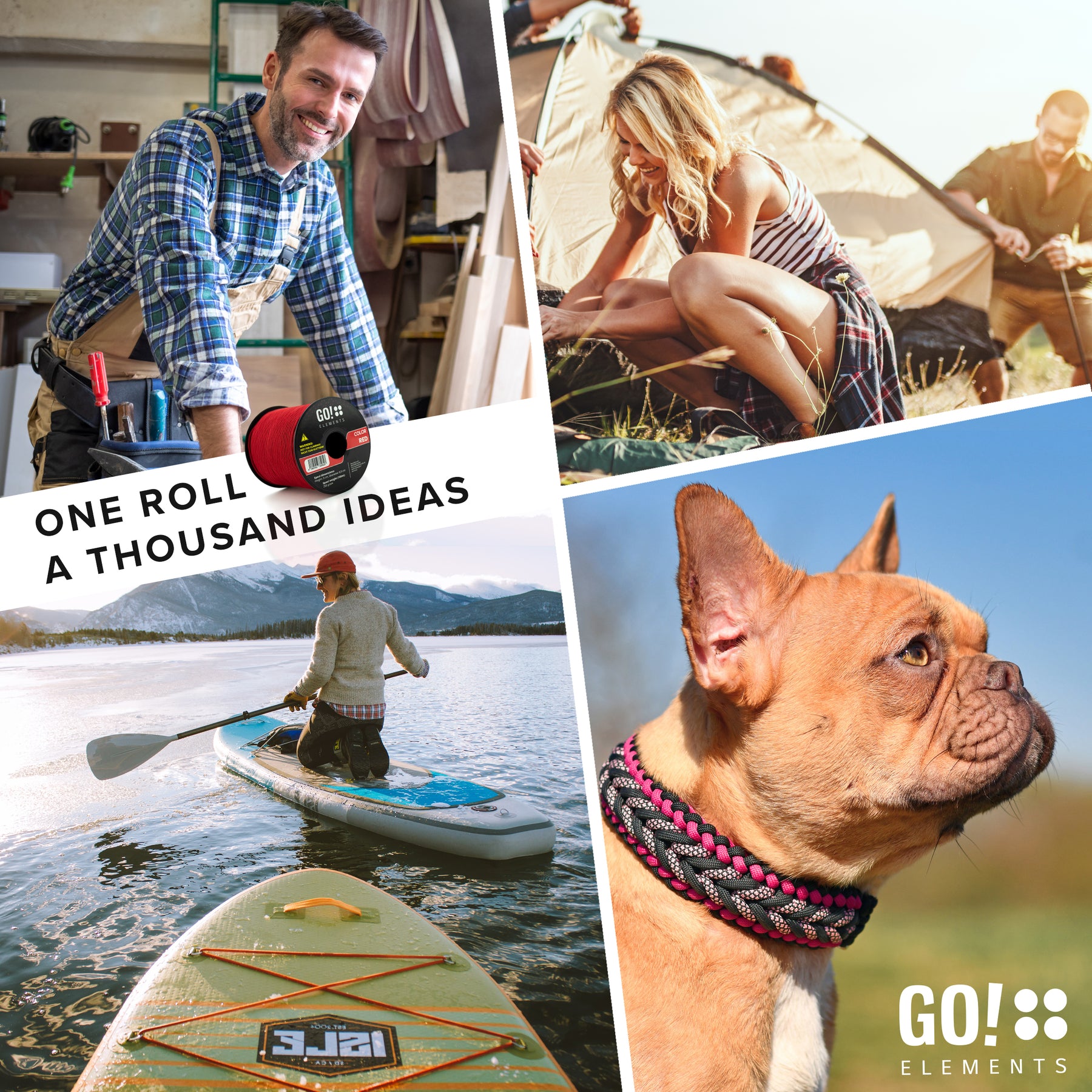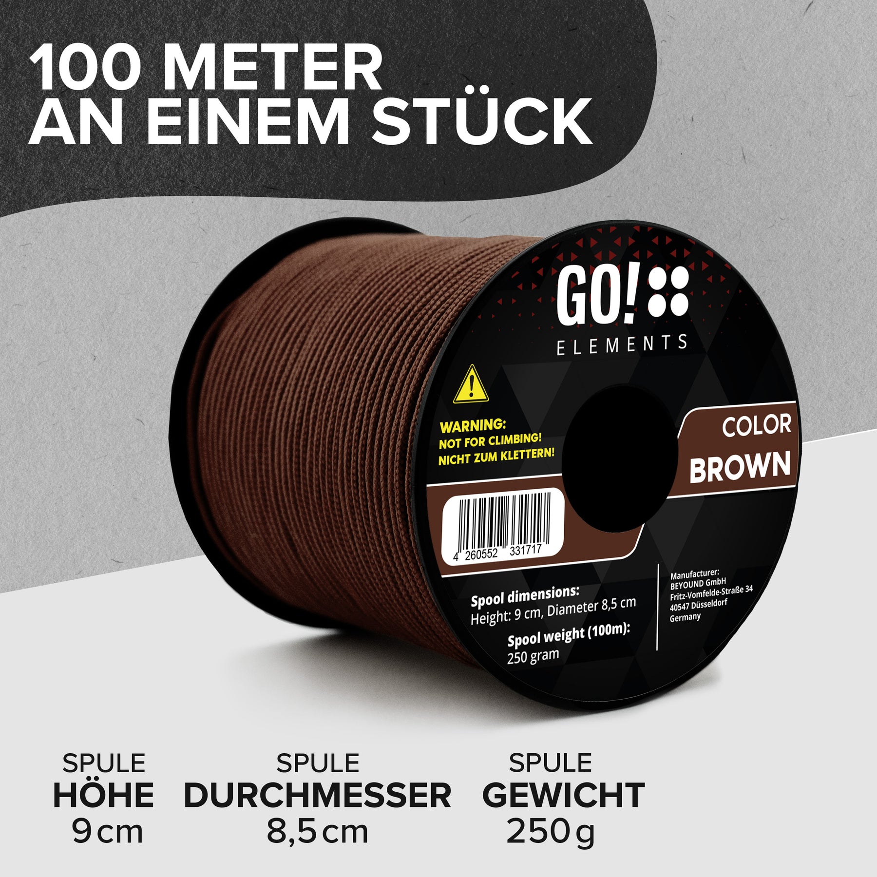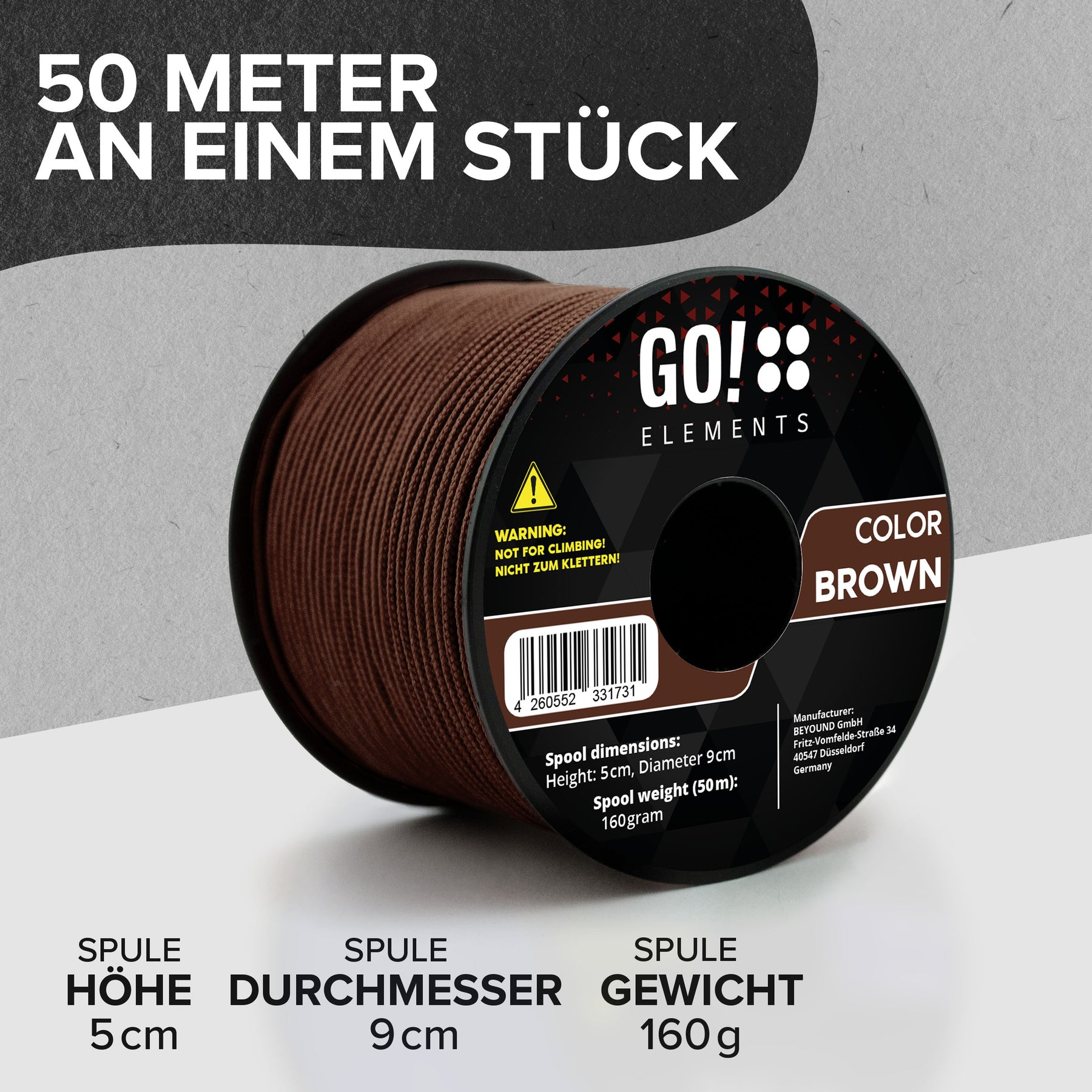 ALLZWECKSEILE von GO!elements - Unser Nylonseil ist perfekt für Outdoor und Indoor. Das Paracord 100 ist deutlich filigraner als z.B. Paracord 550 und hat eine hervorragende Bruchlast von 45kg.